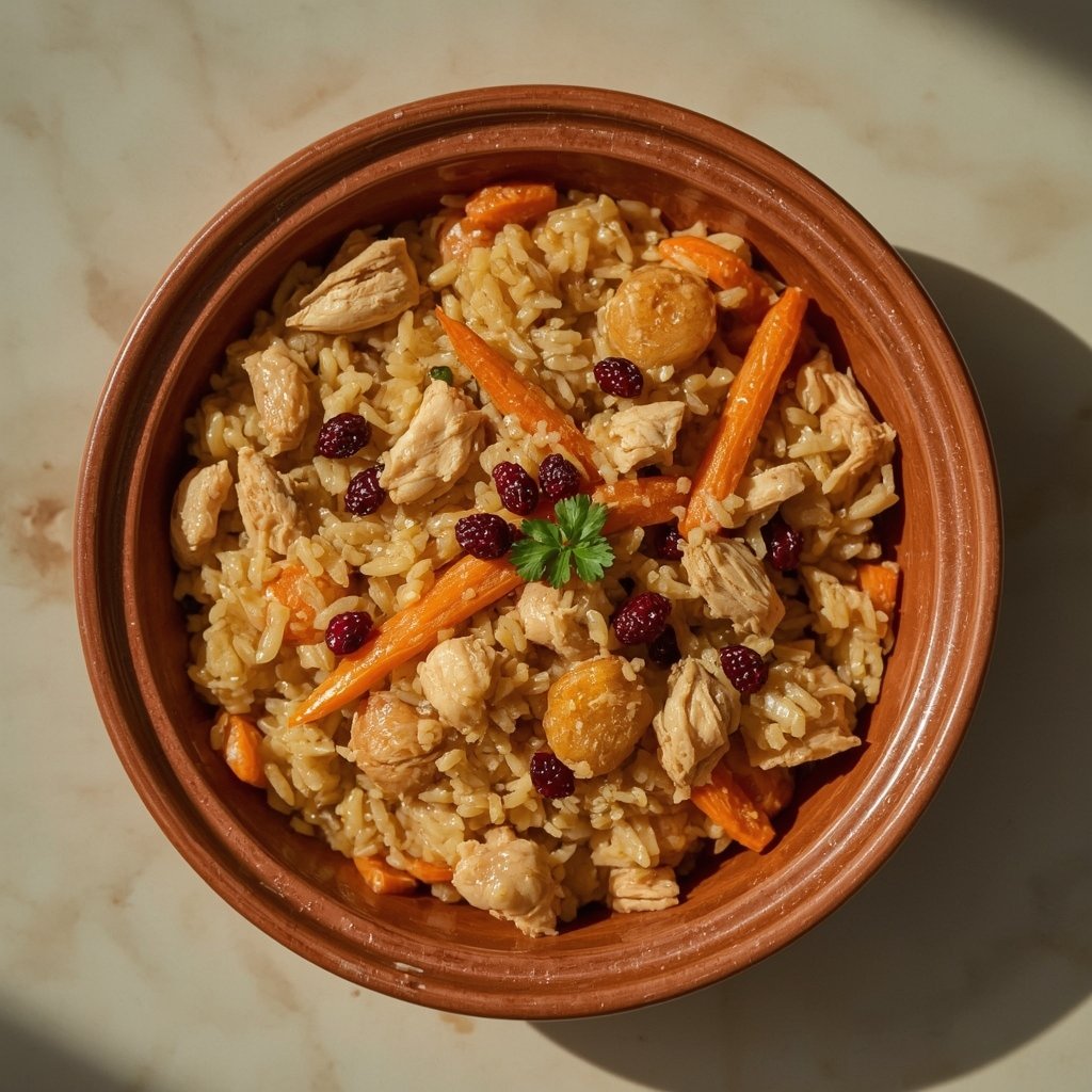 Pilaw (oder Plov) ist ein beliebtes Reisgericht aus Zentralasien und dem Nahen Osten. Es ist ein ‚One-Pot‘-Wunder, bei dem Reis, Fleisch und Gemüse zusammen in einem Topf garen. Die Kombination aus zartem Hähnchen und den karamellisierten Karotten, intensiv gewürzt mit Kreuzkümmel, macht dieses Gericht unglaublich befriedigend und aromatisch.