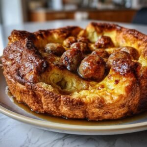 Toad in the Hole erschien erstmals im 18. Jahrhundert als Rezept in englischen Kochbüchern. Der Ursprung des Namens ist unklar; eine Theorie besagt, dass die Würstchen aus dem Teig herausschauen wie Kröten aus einem Loch. Traditionell wurde das Gericht mit Fleischresten und billigeren Wurstsorten zubereitet, um eine sättigende Mahlzeit für die Familie zu schaffen. Der Teig ist identisch mit dem des Yorkshire Pudding. Im viktorianischen Zeitalter wurde es zu einem beliebten Sonntagsgericht. In modernen Pubs wird es oft mit „Bangers and Mash“ konkurrierend angeboten. Diese Version verwendet reine Rinderwürstchen und eine kräftige Zwiebelsoße ohne Wein. Es ist ein perfektes Gericht für regnerische Tage und ein echter Geheimtipp für alle, die die britische Küche lieben.