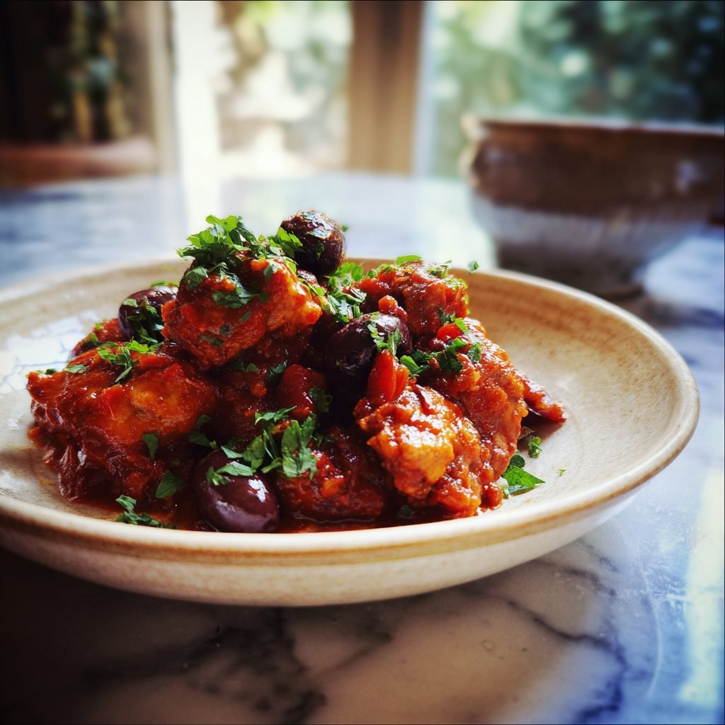 Italienisches Pollo alla Cacciatora – Jägerhuhn mit Oliven