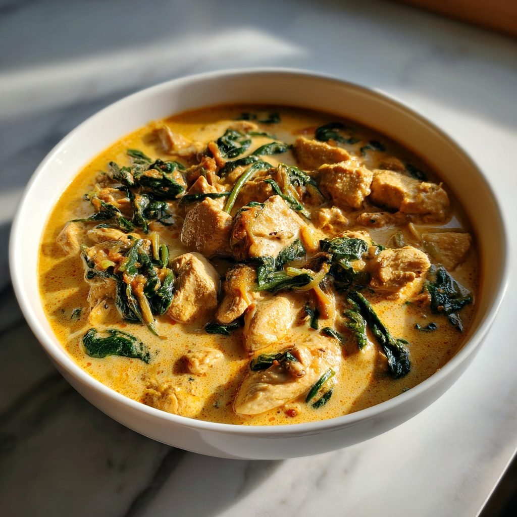 Zartes Hähnchen Curry mit Kokosmilch und Spinat