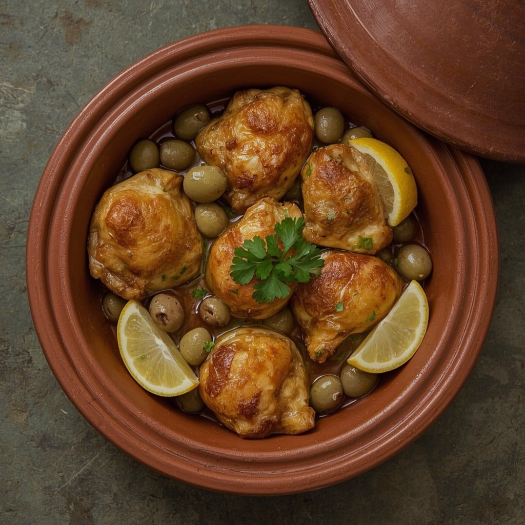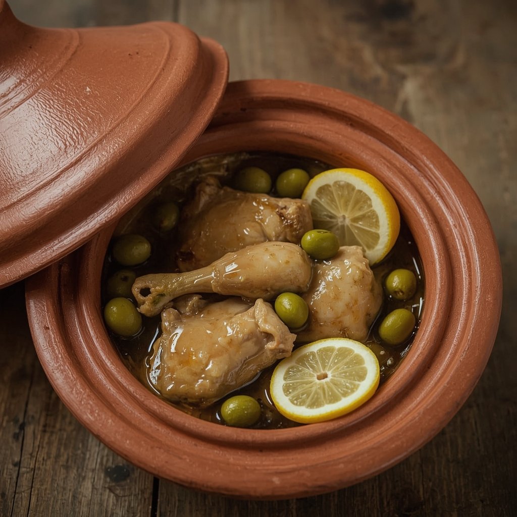 Marokkanische Hähnchen-Tajine mit eingelegten Zitronen und Oliven