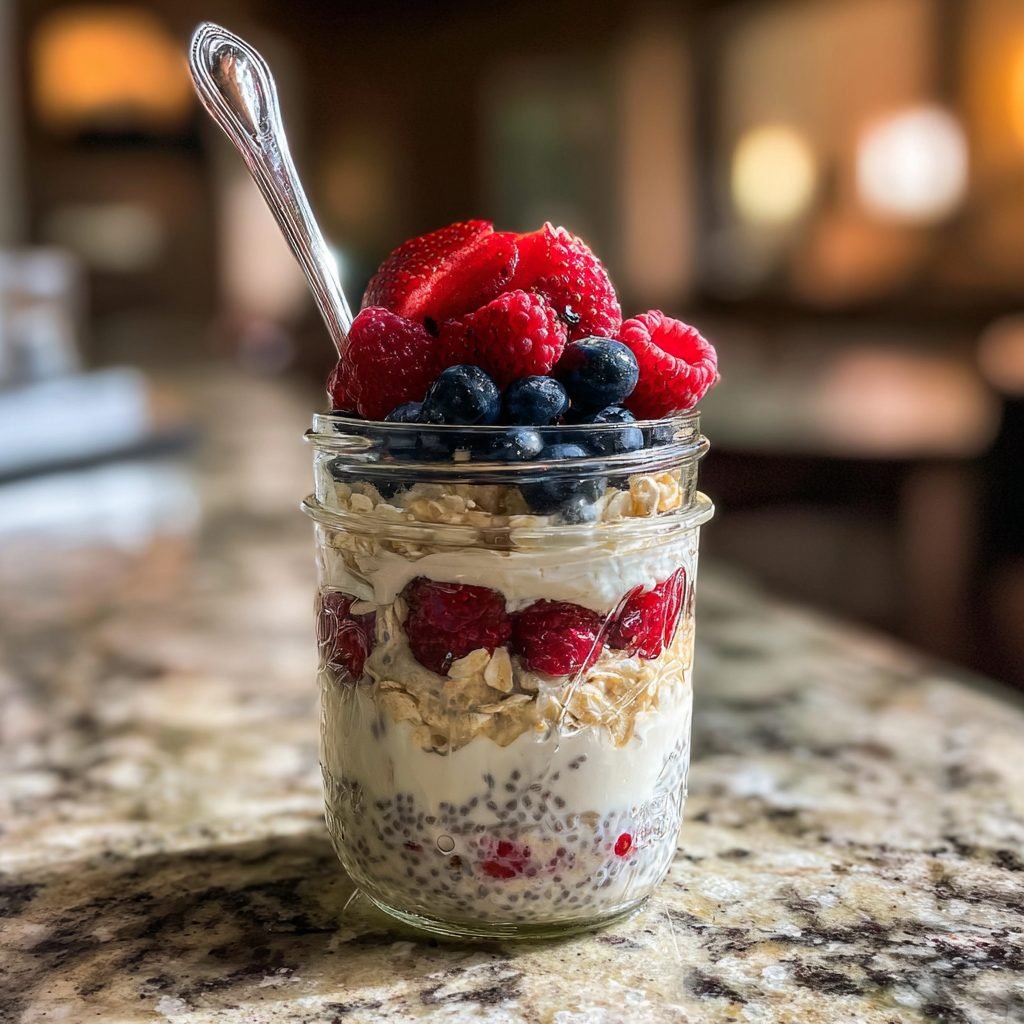 Der Morgenstress hat ein Ende! Diese Overnight Oats sind das ultimative Meal-Prep-Frühstück: Einfach abends im Glas schichten, über Nacht im Kühlschrank ziehen lassen und morgens ein cremiges, sättigendes und gesundes Frühstück genießen. Perfekt für Berufstätige, Studenten oder alle, die morgens keine Zeit haben. 🍽️ Ein Blick in die Geschichte des Gerichts Overnight Oats, oder ‚Über-Nacht-Hafer‘, haben ihren Ursprung in der Schweizer Bircher-Benner-Müesli-Tradition des frühen 20. Jahrhunderts, die rohe, eingeweichte Haferflocken als gesundes Heilnahrung propagierte. Der moderne Trend explodierte durch Food-Blogs und Social Media in den 2010er Jahren, da er perfekt zu den Bedürfnissen einer mobilen, gesundheitsbewussten Generation passt. Das Glas …
