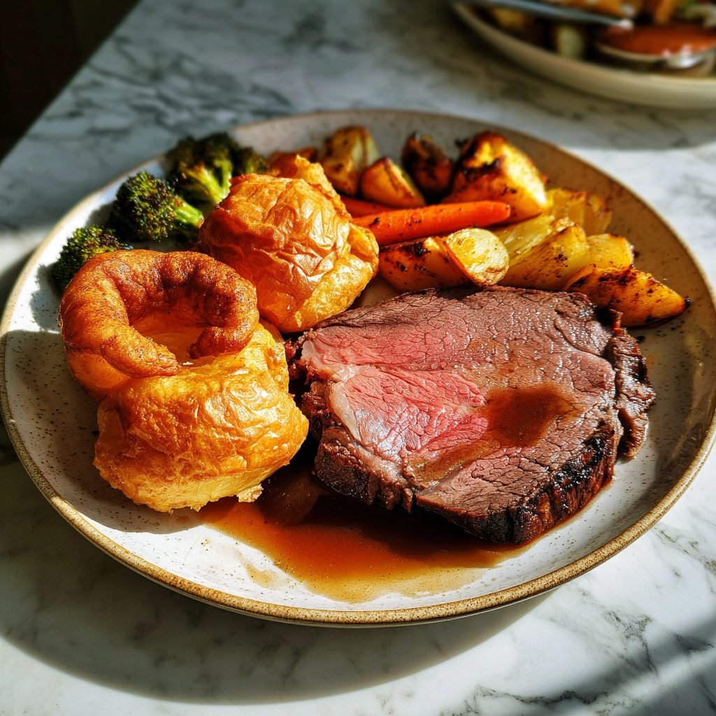 Der Sunday Roast ist eine britische Institution, die auf das Mittelalter zurückgeht, als Leibeigene nach der Kirche ein großes Festmahl mit ihrem Lord teilnahmen. Der Braten wurde nach der Kirche in den noch heißen Backöfen der Bäckereien gegart, während die Familie in der Kirche war. Yorkshire Pudding, ein Teig aus Eiern, Mehl und Milch, der im heißen Bratenfett aufgeht, stammt aus der Grafschaft Yorkshire und wurde ursprünglich als günstige, sättigende Beilage vor dem teureren Fleisch serviert, um den Appetit zu zügeln. Roast Beef selbst wurde im 18. Jahrhundert zum Symbol britischer Stärke und wurde von französischen Spöttern „les Rosbifs“ genannt. Das Gericht verkörpert britisches Understatement, handwerkliche Perfektion und familiäre Tradition. In Deutschland ist es durch Pubs und den britischen Einfluss bekannt und geschätzt.