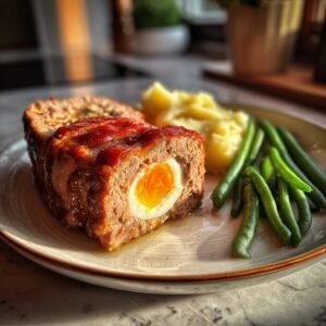 Der Falsche Hase ist ein beliebter deutscher Hackbraten, der seinen Namen der Form eines zusammengerollten Hasen ohne Kopf verdankt. Gefüllt mit hartgekochten Eiern und umwickelt mit dünnen Speckscheiben, ist er saftig, aromatisch und ein Fest für die ganze Familie.