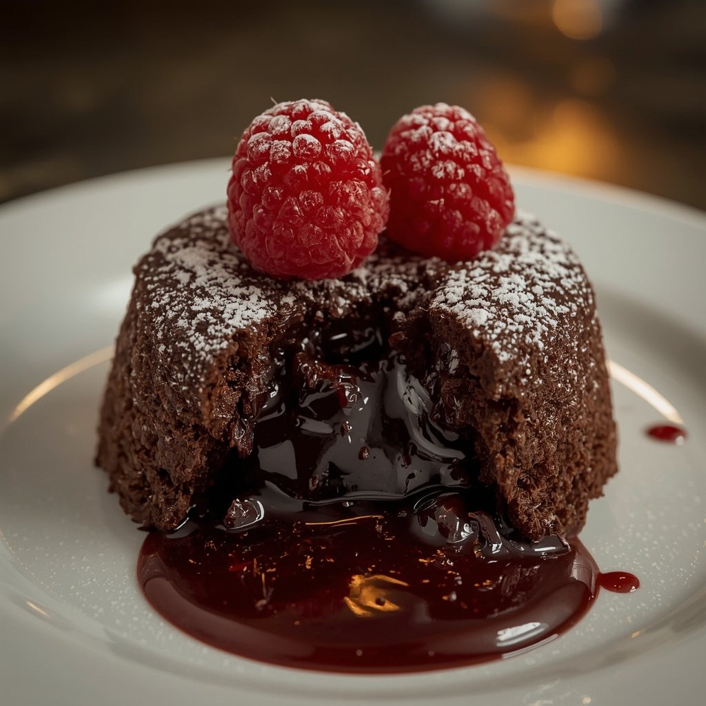 Servieren Sie den warmen Lavakuchen mit einer Kugel Vanilleeis oder einer leichten Himbeersauce, um den reichen Geschmack auszugleichen.