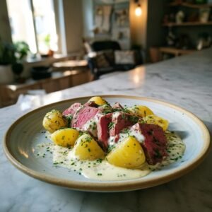 Youvarlakia sind zarte, mit Reis gefüllte Lammfleischklößchen, die in einer aromatischen Brühe garen und schließlich mit der berühmten griechischen Avgolemono-Soße aus Ei und Zitrone veredelt werden. Das Ergebnis ist leicht, säuerlich und unvergesslich.