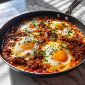 Shakshuka ist längst kein Geheimtipp mehr, aber haben Sie es schon einmal mit würzigem Rinderhackfleisch probiert? Diese herzhafte Variante des Klassikers ist das perfekte Frühstück für ein langes Wochenende im Februar. Die Kombination aus cremig pochierten Eiern, einer aromatischen Tomatensauce und dem kräftigen Fleisch gibt Ihnen die nötige Energie für den Tag. Es ist gesund, sättigend und in nur einer Pfanne zubereitet.