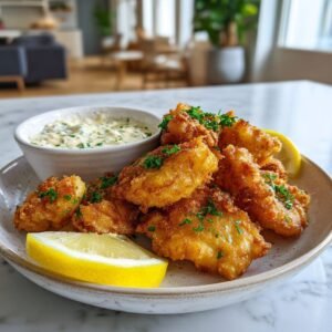 Holländische Kibbeling – frittierte Kabeljau-Stücke mit Kräutersauce