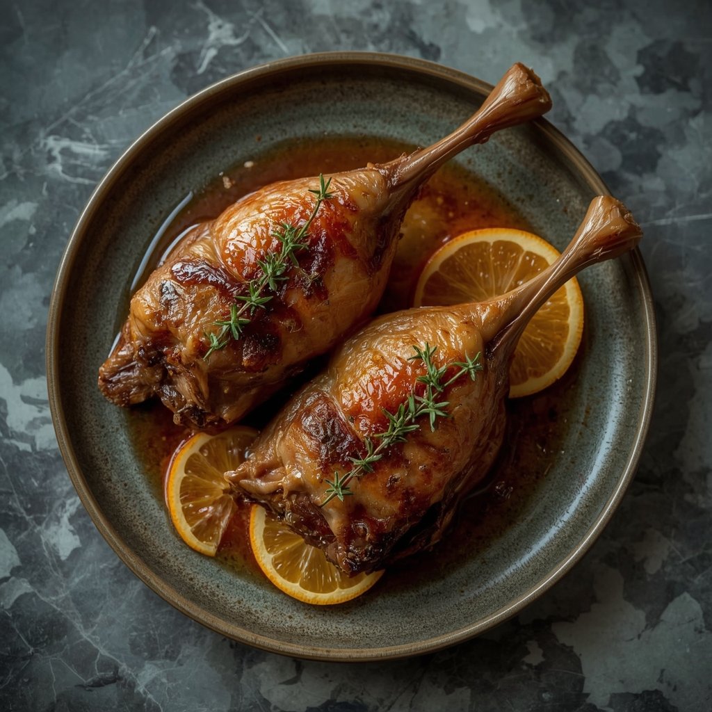 Knusprige Entenhaut und zartes, saftiges Fleisch sind die Markenzeichen dieses Gerichts. Die Entenschenkel werden langsam gebraten, bis die Haut perfekt knusprig ist, und mit einer klassischen Orangensoße serviert, die eine schöne Balance aus Süße und Säure bietet. Ein beeindruckendes Essen, das leichter zuzubereiten ist, als man denkt.