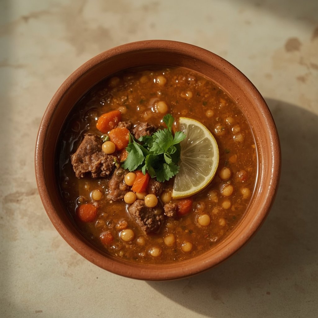 Marokkanische Harira-Suppe mit Kichererbsen und Lamm