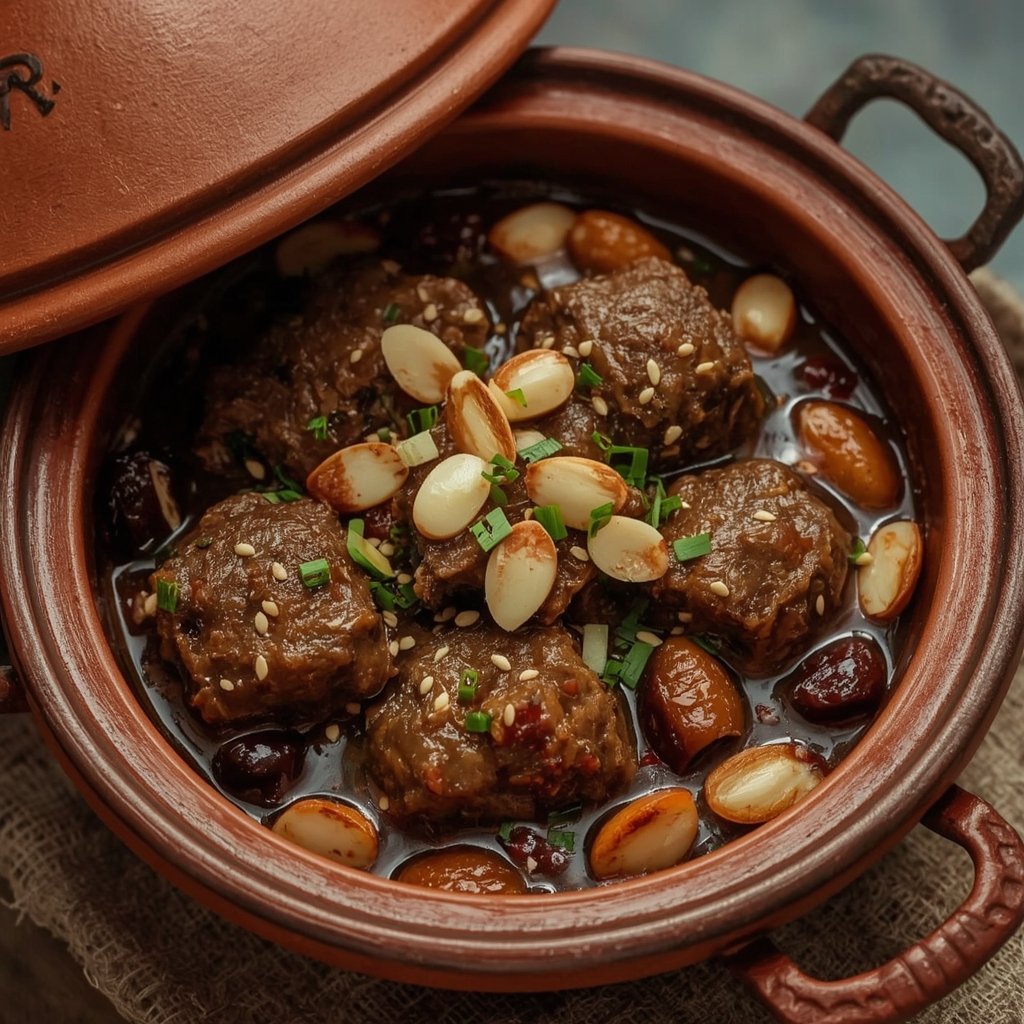 Diese marokkanische Lamm-Tajine ist ein kulinarisches Meisterwerk, das die Seele der nordafrikanischen Küche einfängt. Zartes Lammfleisch, geschmort mit süßen Pflaumen, aromatischen Gewürzen und Honig, entwickelt eine unvergessliche Geschmackstiefe. Die Kombination aus süß und herzhaft, weich und knusprig, macht dieses Gericht zu einem unübertroffenen Festmahl, das Ihre Gäste beeindrucken wird.