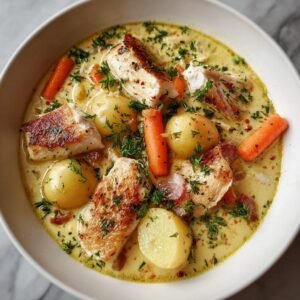 Dieser Fischtopf ist ein klassisches Gericht der norddeutschen Küche. Feste Fischfilets werden mit Kartoffeln und Möhren in einer cremigen Senfsoße gegart, die dem Gericht eine würzige Note verleiht. Schnell zubereitet, sättigend und voller Geschmack – perfekt für einen kalten Winterabend.
