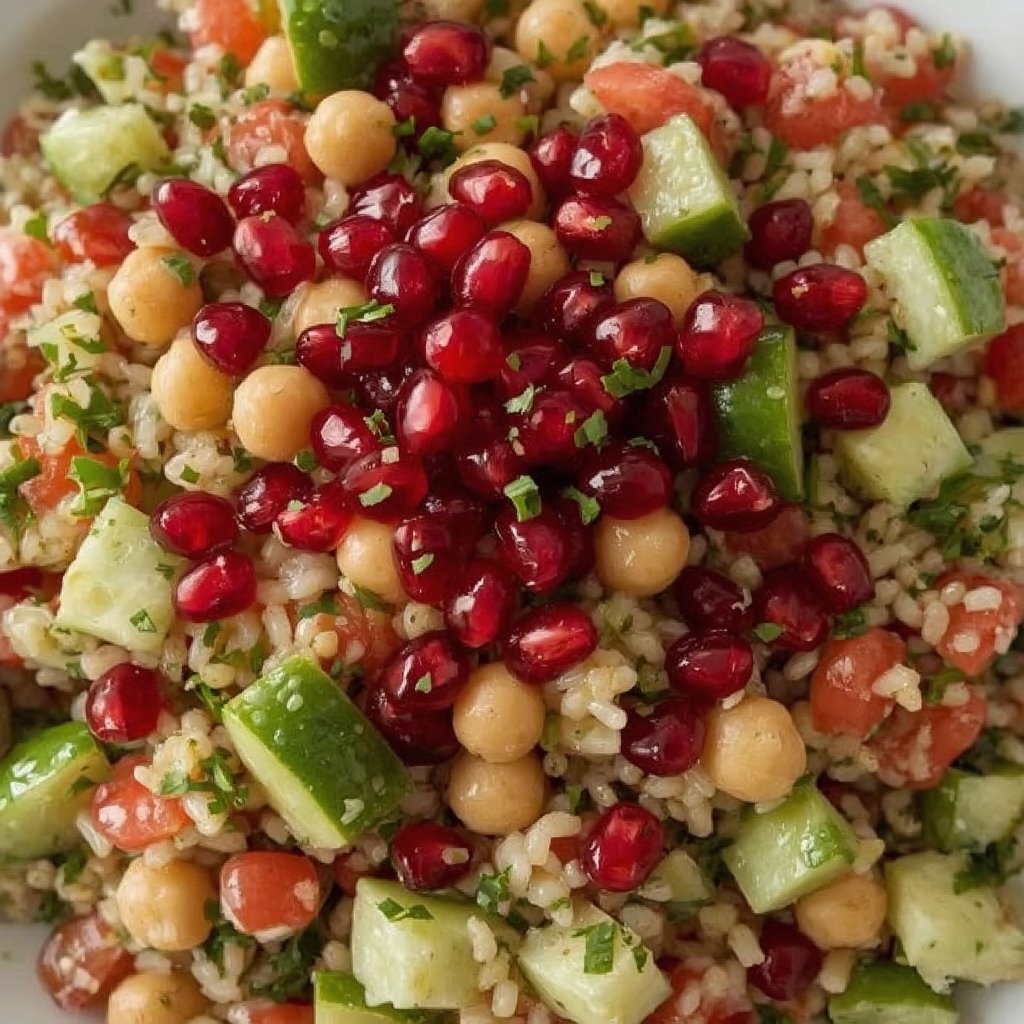 Dieser orientalische Couscous-Salat ist ein Geschmackserlebnis: Die fluffige Textur des Couscous bildet die Basis für eine Explosion frischer Aromen. Geröstete, gewürzte Kichererbsen sorgen für Proteine und Crunch, während Granatapfelkerne und frische Kräuter (Minze, Koriander) einen süß-sauren, erfrischenden Kontrast bieten. Abgerundet wird das Gericht durch ein leichtes Dressing mit Zitrone und Olivenöl.