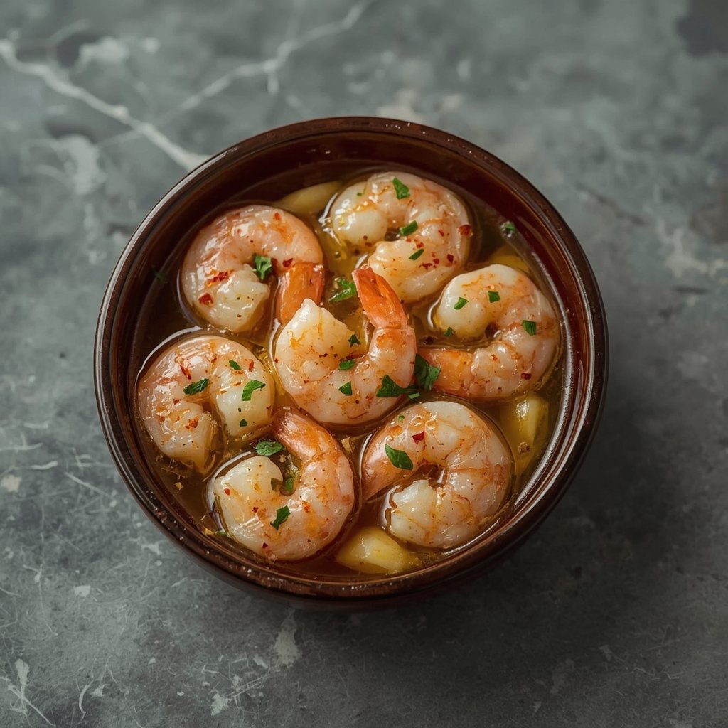 Dieses Gericht stammt aus der spanischen Tapas-Kultur, wo kleine, aromatische Portionen serviert werden. Das Geheimnis liegt darin, das Öl mit dem Knoblauch zu aromatisieren, ohne es zu verbrennen, und die Garnelen nur kurz zu braten.