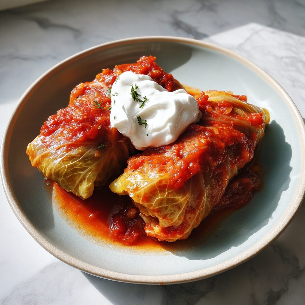 Gołąbki sind das polnische Nationalgericht der Hausmannskost. Zarte Weißkohlblätter werden mit einer würzigen Mischung aus Rinderhack, Reis und Zwiebeln gefüllt, zu kleinen Päckchen gewickelt und in einer reichhaltigen Tomatensoße geschmort, bis sie butterweich sind. Ein Gericht, das nach Kindheit und Sonntag schmeckt.