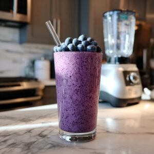 - Alle Zutaten in der angegebenen Reihenfolge (Flüssigkeit zuerst) in einen leistungsstarken Mixer geben.