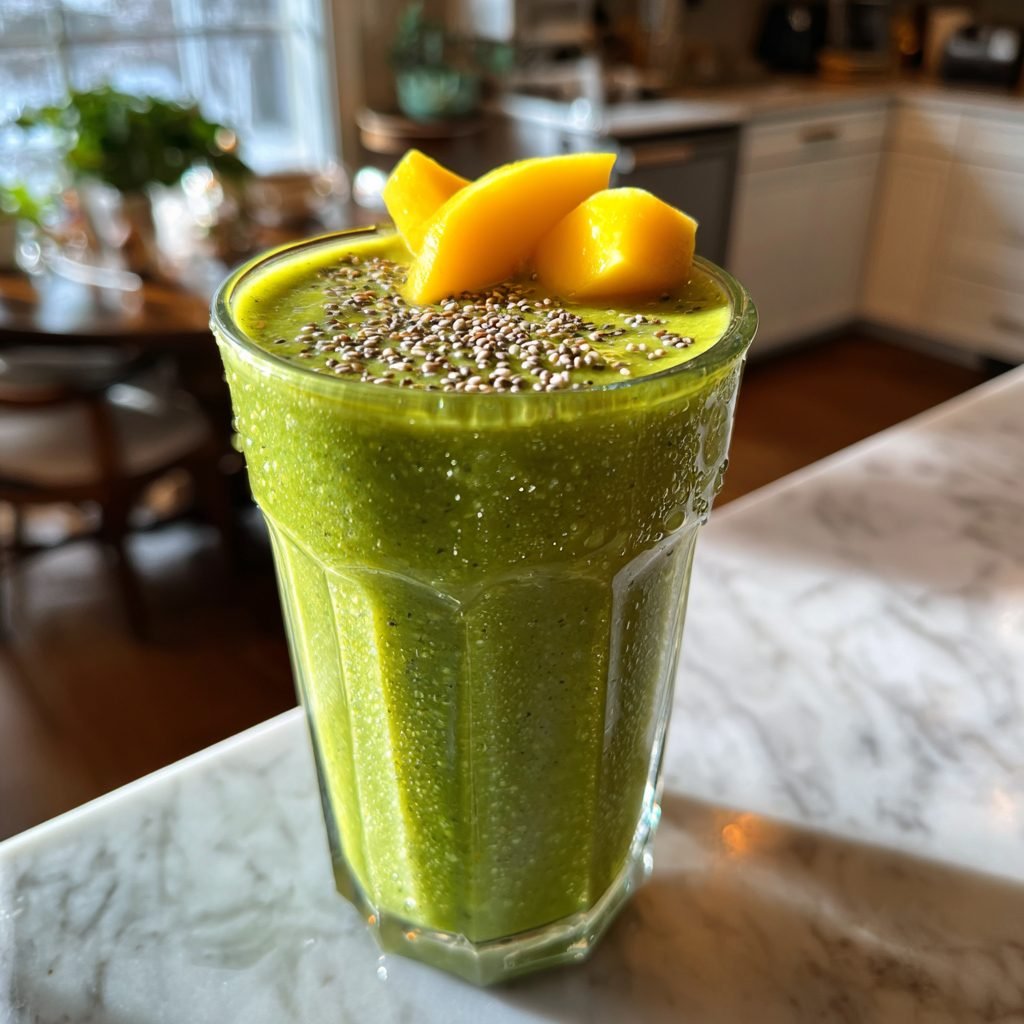 Dieser leuchtend grüne Smoothie ist mehr als nur ein Getränk – er ist eine flüssige Vitaminbombe! Die süße Mango und die Banane harmonieren perfekt mit dem milden Spinat, während der frische Ingwer für eine belebende Schärfe sorgt. In 5 Minuten gemixt, ist er der ideale gesunde Snack oder ein schnelles Frühstück zum Mitnehmen.