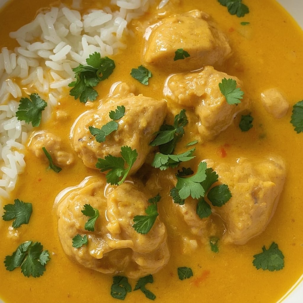 Dieses cremige Hähnchen-Curry ist die ideale Lösung für ein schnelles, aber dennoch geschmackvolles Abendessen. Mit Kokosmilch und einer ausgewogenen Currymischung wird das Hähnchenfleisch zart und die Soße unwiderstehlich. Es beweist, dass man für ein exotisches, wärmendes Gericht nicht stundenlang in der Küche stehen muss.