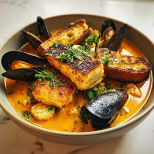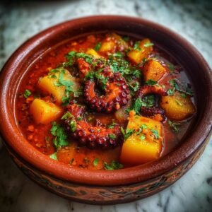Dieser Tintenfisch-Eintopf ist eine Hommage an die spanische Küstenküche. Zarte Tintenfischstücke werden mit Kartoffeln, Paprika und Knoblauch in einer kräftigen Tomaten-Paprika-Brühe geschmort. Dazu gibt es reichlich frisches Brot, um die köstliche Sauce aufzutunken.