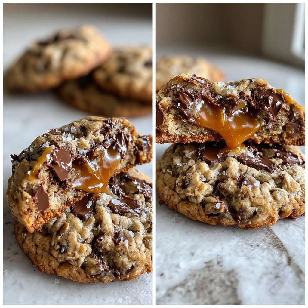 Zarte Schokoladen-Hafer-Cookies mit Salted Caramel
